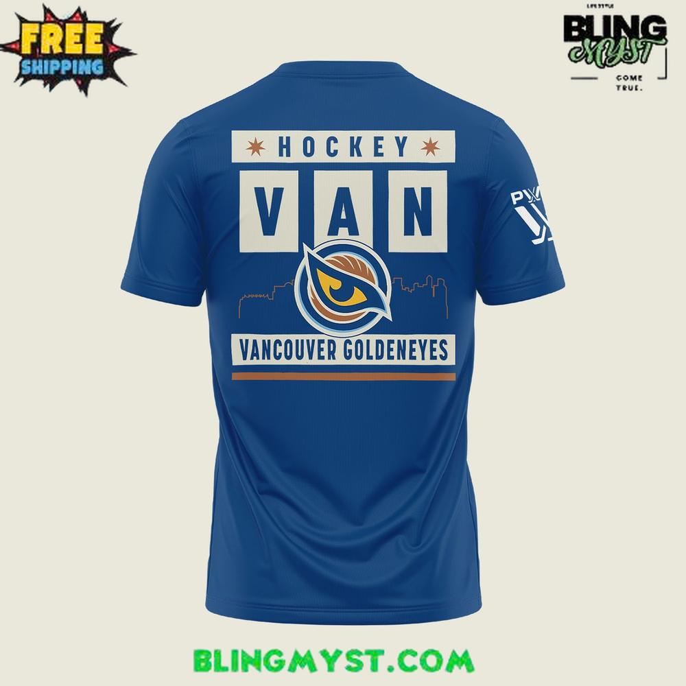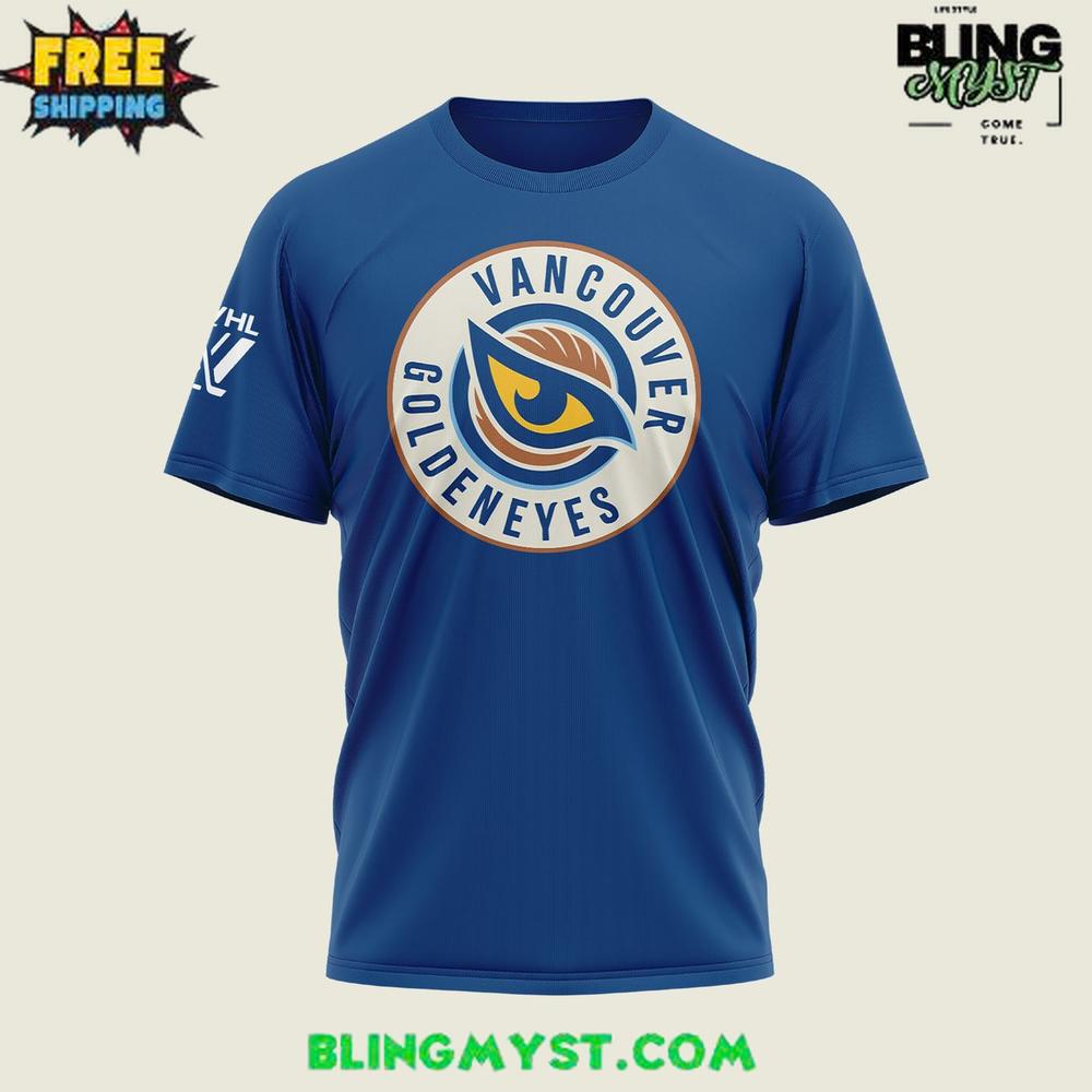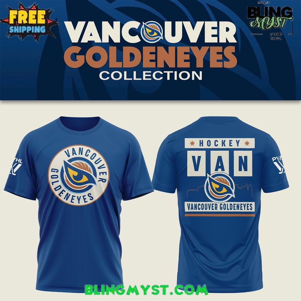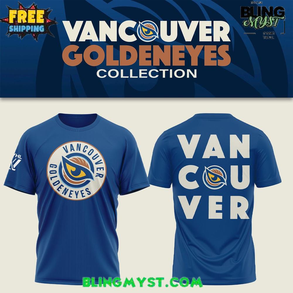 • The front features the clean, stacked “Vancouver Goldeneyes” text paired with the striking team emblem — a symbol of focus and dominance.