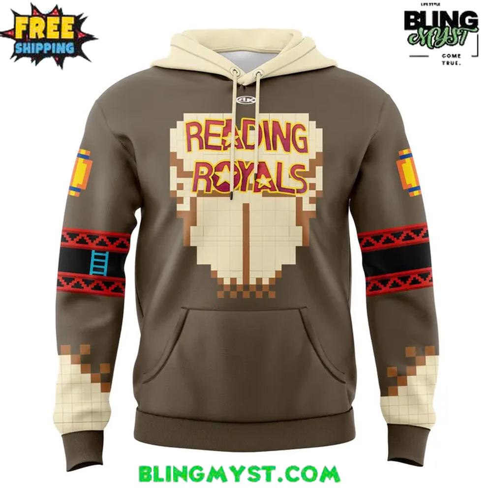 The Reading Royals 2026 Retro Game Night Hoodie as playful arcade-core streetwear with a cozy, collectible feel. The silhouette is a classic pullover hoodie—relaxed, warm, and easy to layer—so it works effortlessly for everyday outfits. The earthy brown-and-cream palette makes it surprisingly wearable, giving it a grounded base that pairs well with neutrals. It feels nostalgic without being costume-like, which makes it a strong option for fans who want fun graphics in a practical, daily piece.