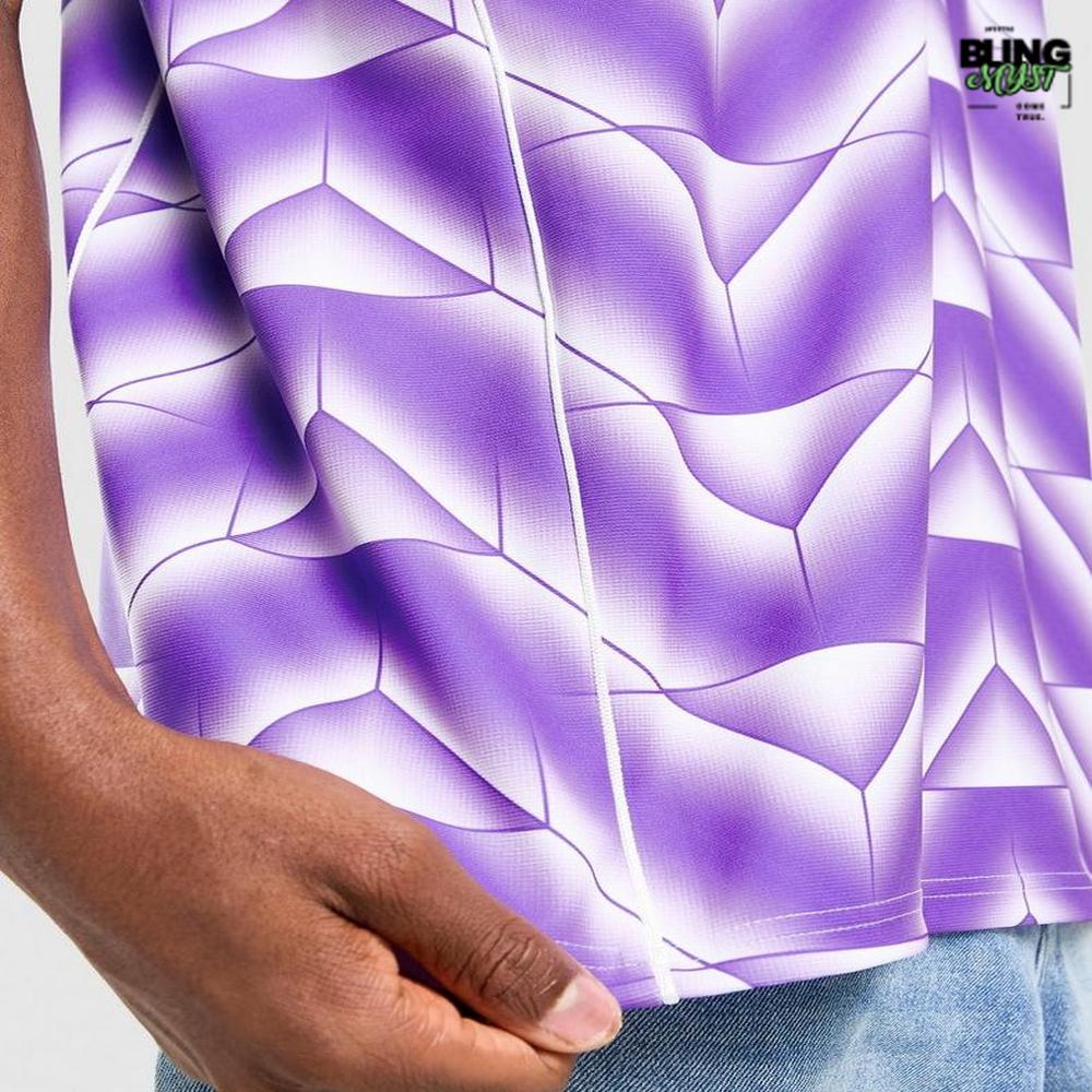 - The purple tonal gradient and dynamic pattern evoke movement and energy, capturing Real Madrid’s unstoppable rhythm.