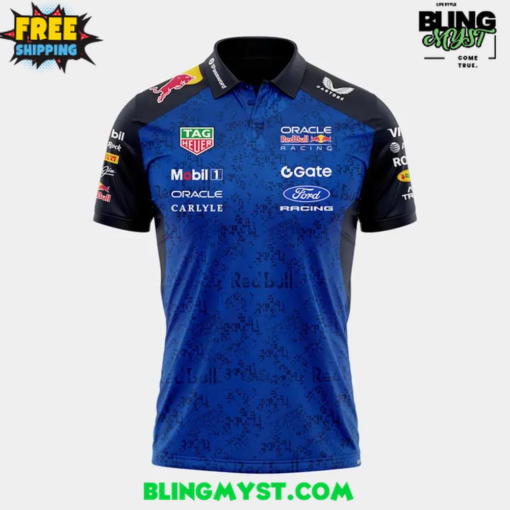 The Red Bull Racing Team 2026 New Navy Polo Shirt is a lesson in how performance culture becomes wearable identity. At first glance, the deep navy base sets a tone of discipline and precision—a color choice that feels intentionally “garage-ready,” like it belongs under paddock lights rather than in a generic merch rack. It’s sleek, controlled, and unmistakably professional, which is exactly what you want from a team piece tied to elite motorsport.