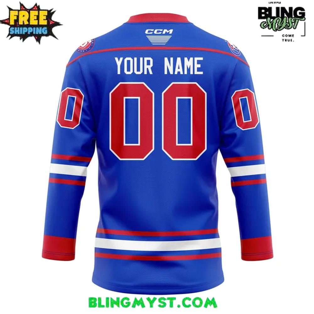 Design details elevate it into collectible territory. The back “YOUR NAME” and bold 00 numerals add a personalized, fan-specific touch, transforming the jersey into wearable memorabilia. The numbers are high-contrast and arena-legible, reinforcing on-ice authenticity. The structured hockey cut ensures it feels like a real uniform, not costume wear. Overall, this jersey balances nostalgia, team identity, and modern sport-core style, making it ideal for fans who want to wear history with confidence.