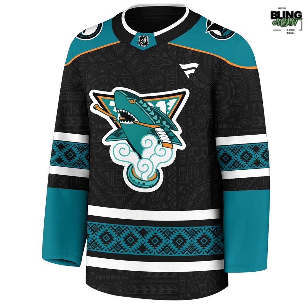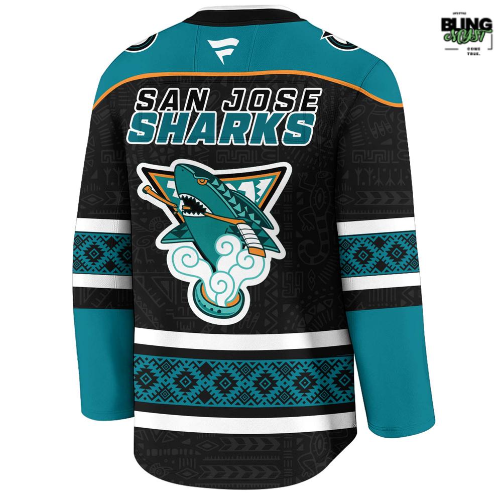 The San Jose Sharks Indigenous People Heritage 2025 Hockey Jersey blends striking cultural artwork with bold team spirit, creating a meaningful and visually powerful jersey design.