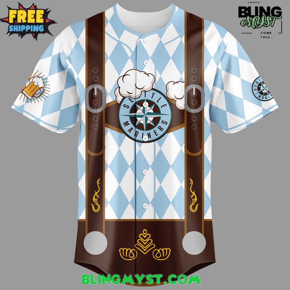👉 Raise your stein and head to Blingmyst.com to grab your Seattle Mariners x Oktoberfest Night 2025 Baseball Jersey before it’s gone.