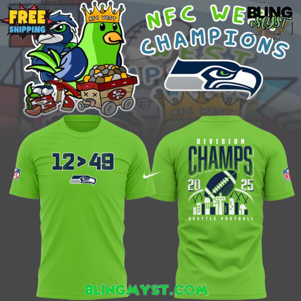 The Seattle Seahawks 2025 NFC West Champions Fan Art T-Shirt delivers bold energy and playful attitude, celebrating a division-winning season with eye-catching fan-driven design.