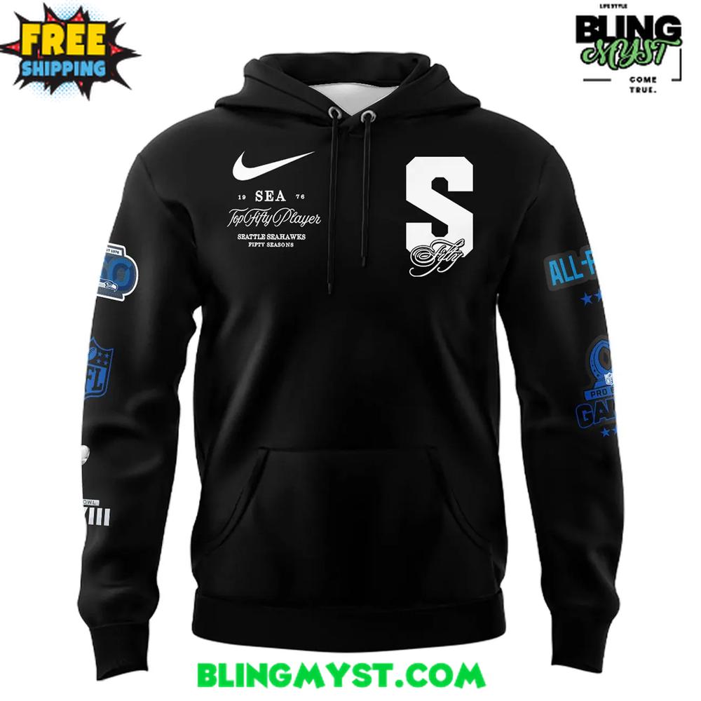 This hoodie goes beyond typical fanwear — it’s a celebration of Seahawks history. With its premium build, commemorative patches, and sleek black design, it’s perfect for collectors and everyday fans alike. Supplies are limited, so secure yours today and wear your 50-year pride with style.