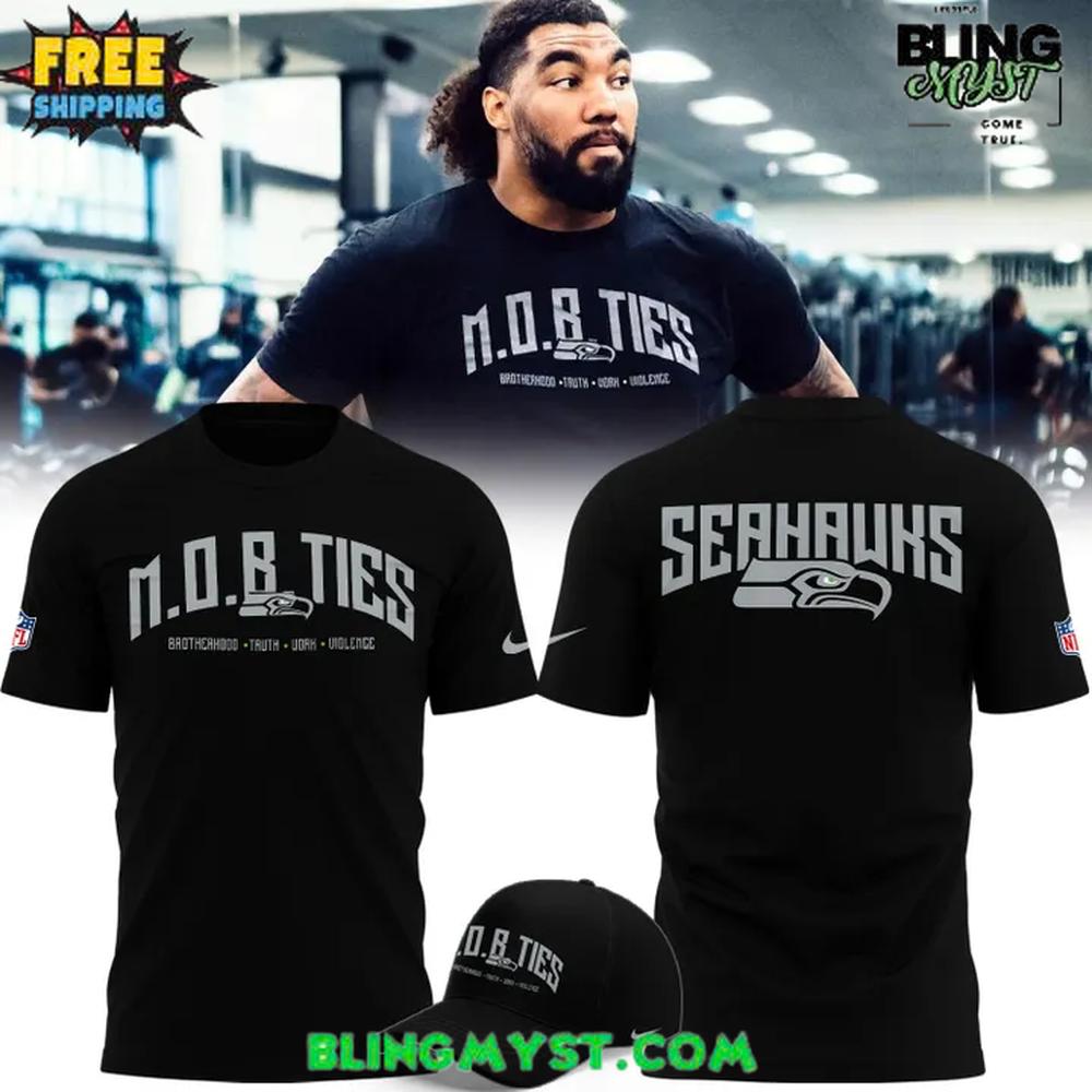 The Seattle Seahawks MOB TIES Special Edition NFL T-Shirt takes a familiar fan staple—the black team tee—and upgrades it into something closer to statement streetwear. Instead of relying solely on a loud logo, the design builds a mood: loyalty, unity, and a slightly rebellious sense of belonging that feels personal rather than purely commercial.