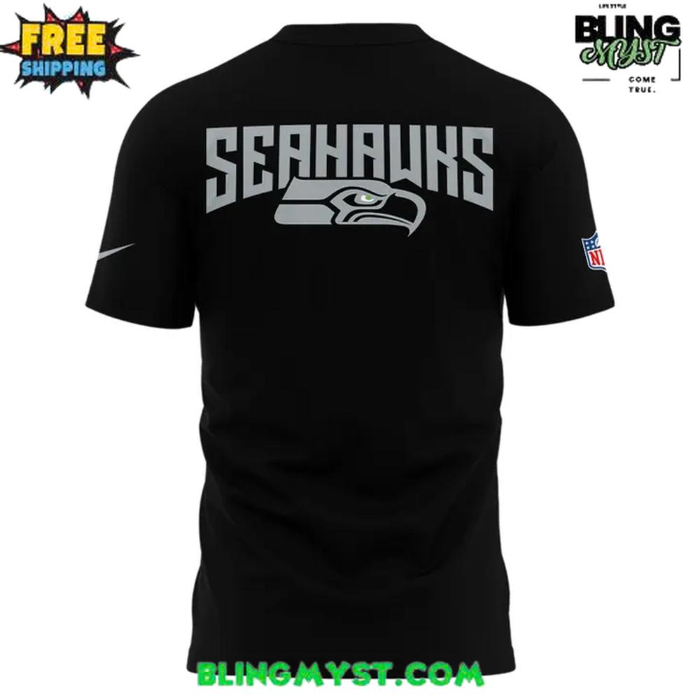 Turn the shirt around and the statement becomes louder, not messier. The oversized “SEAHAWKS” text paired with the iconic Seahawks emblem reads like a modern crest, a mark of allegiance meant to be seen from across a room. It’s a design built for presence—for stadium crowds, gym mirrors, street corners, and anywhere identity is worn outward. Importantly, the layout remains clean and centered, avoiding the common trap of over-layering graphics. The result is confidence without clutter.