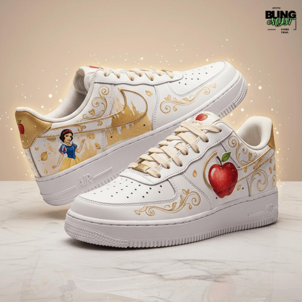 The Snow White Princess Limited Edition Nike Air Force 1 transforms an iconic sneaker silhouette into an enchanting piece of wearable art.