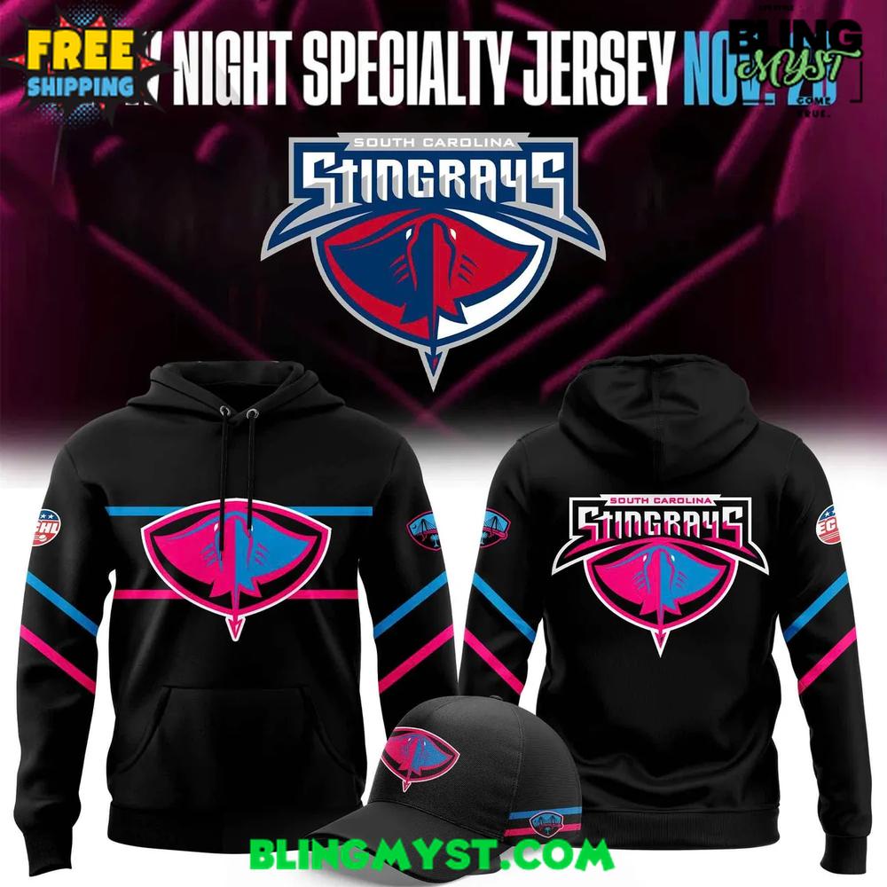 The South Carolina Stingrays Glow Night 2025 Hoodie brings a bold fusion of hockey pride and neon energy to your wardrobe.