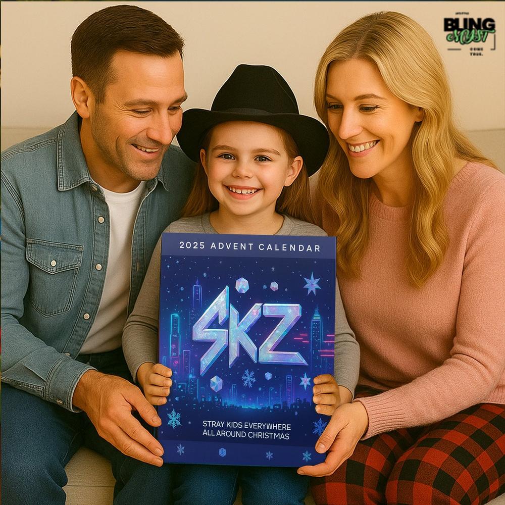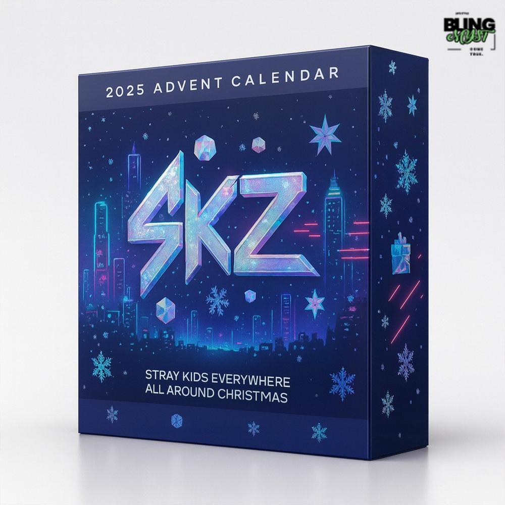 The Stray Kids Everywhere All Around Christmas 2025 Advent Calendar brings a magical fusion of winter aesthetics and K-pop inspiration, wrapped in a bold midnight-blue box with holographic “SKZ” lettering and glittering snowflakes.