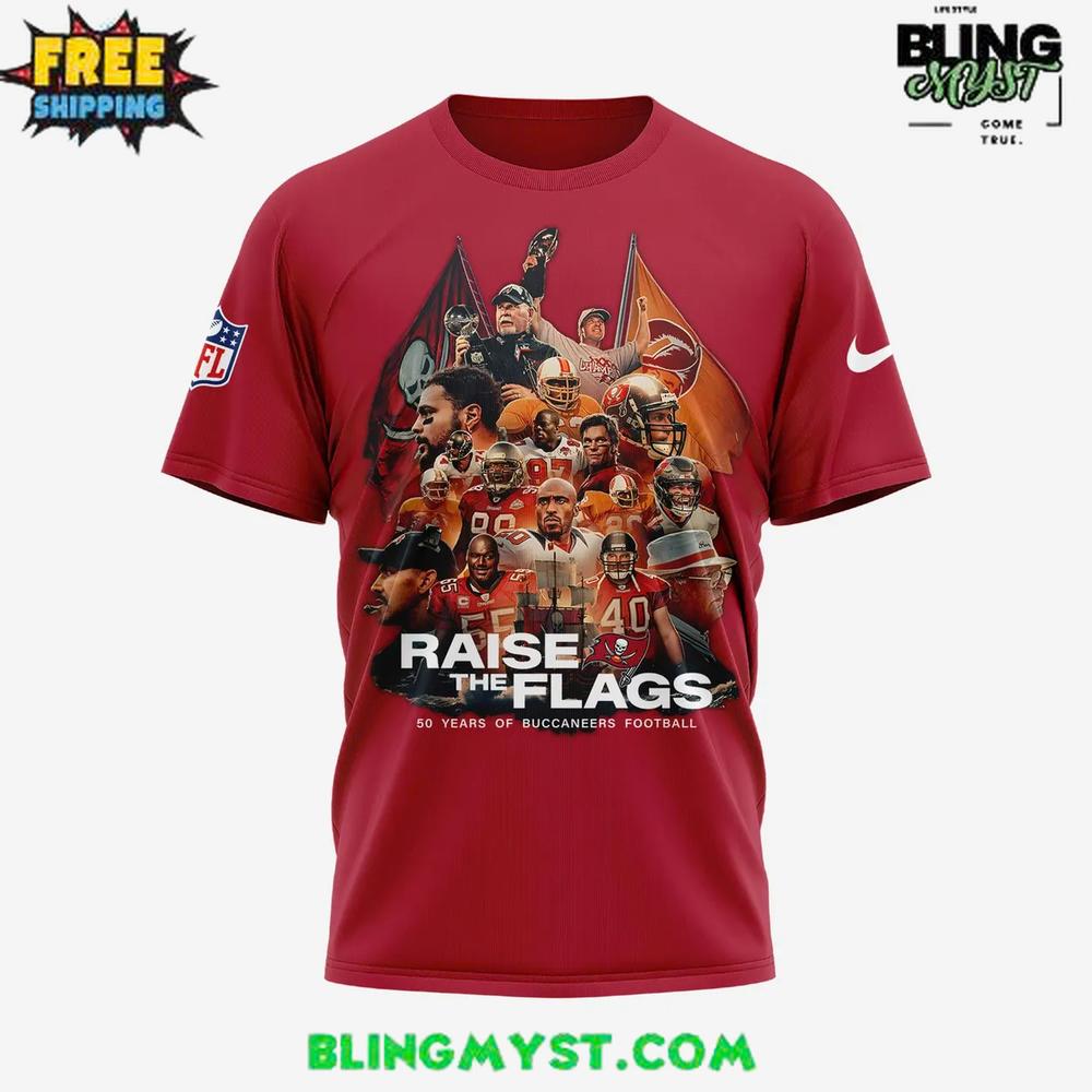 A Half-Century of Heart β Tampa Bay Buccaneers Raise the Flags 50 Seasons of The Buccaneers T-Shirt