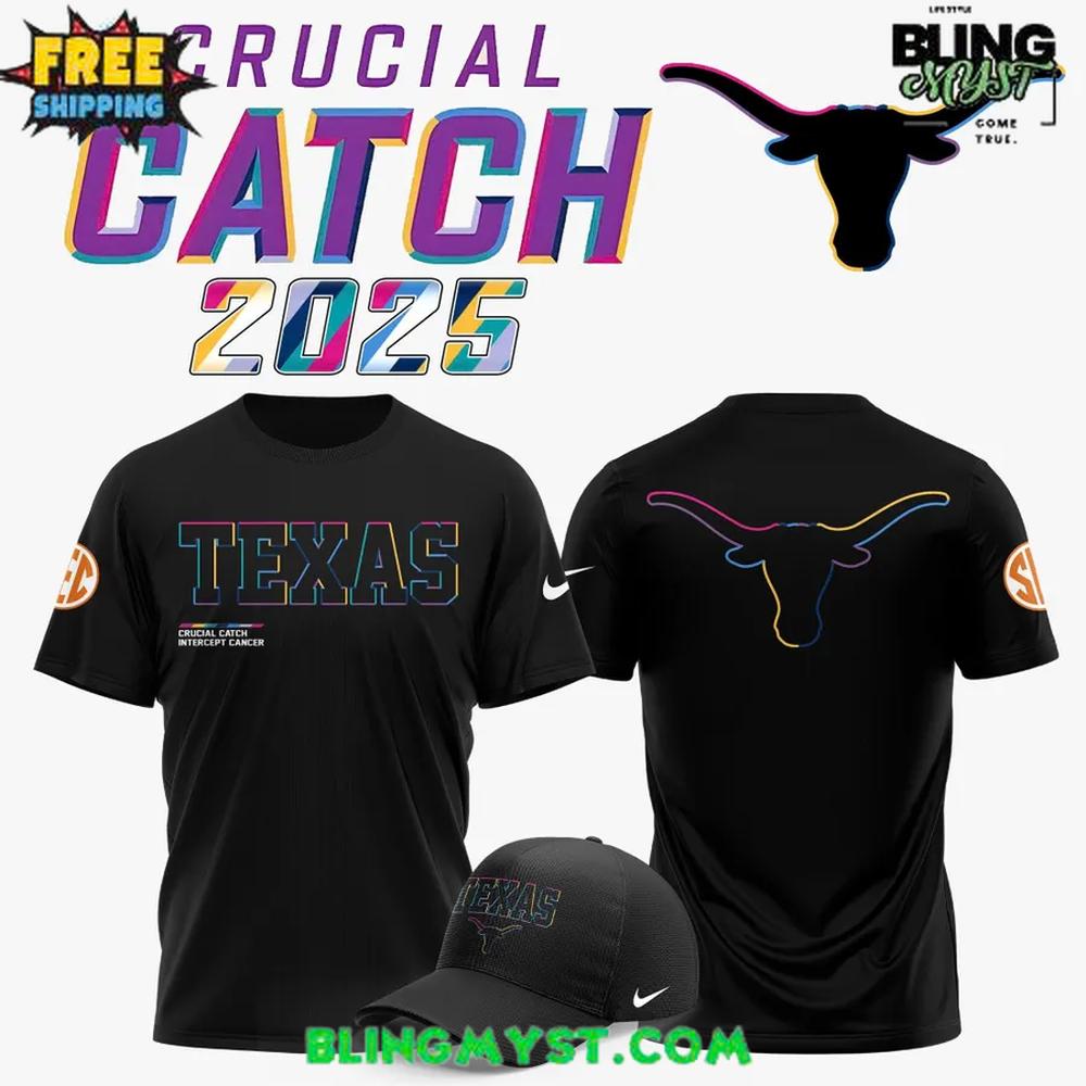 The Texas Longhorns Football 2025 Crucial Catch T-Shirt combines bold team spirit with a meaningful cause, making it a powerful addition to any fan’s wardrobe.