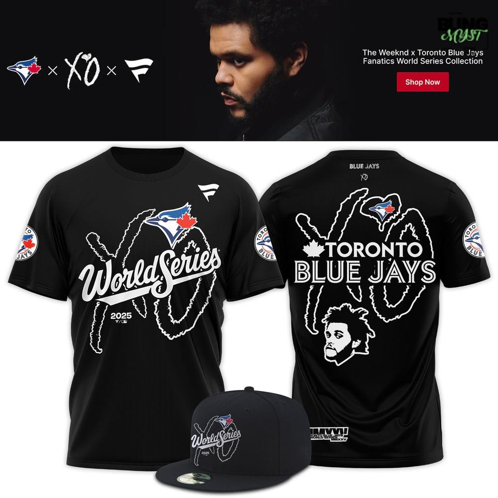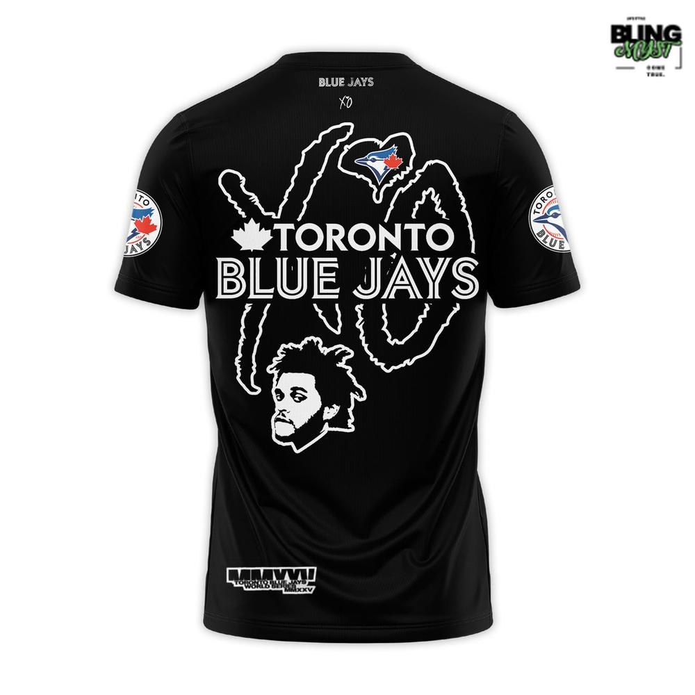 The The Weeknd x Toronto Blue Jays Fanatics World Series 2025 T-Shirt is where stadium energy and XO style collide in a bold all-black design.