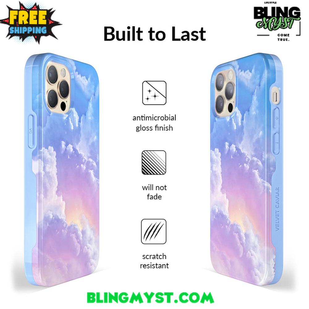 Float into serenity with the Velvet Caviar Cloud Nine iPhone Case, a design that captures the peaceful beauty of a pastel sunset sky.