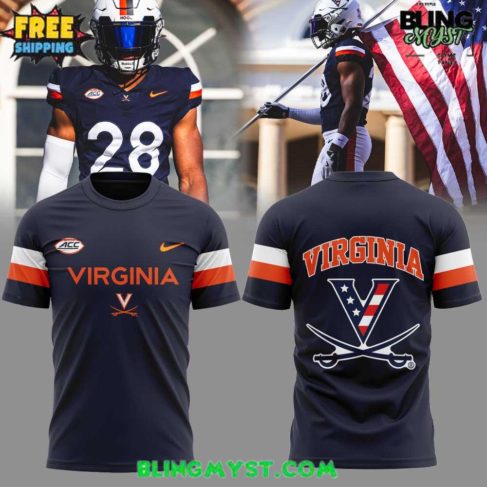 β€’ The navy base mirrors Virginia’s iconic school colors, accented by bold orange and white sleeve stripes β€” a nod to the team’s heritage and the spirit of unity.