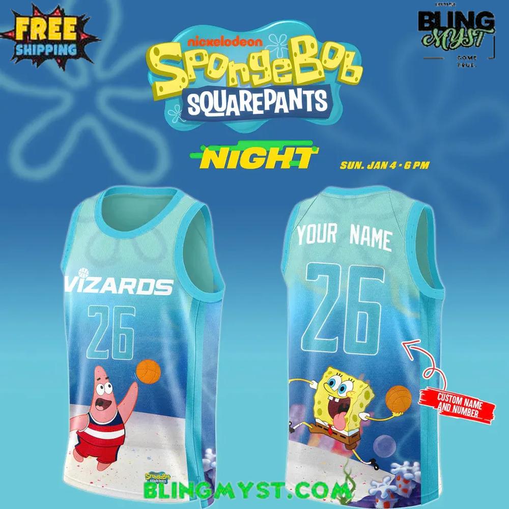 Courtside Fun Meets Animated Energy – Washington Wizards x SpongeBob SquarePants 2025 Special Basketball Jersey