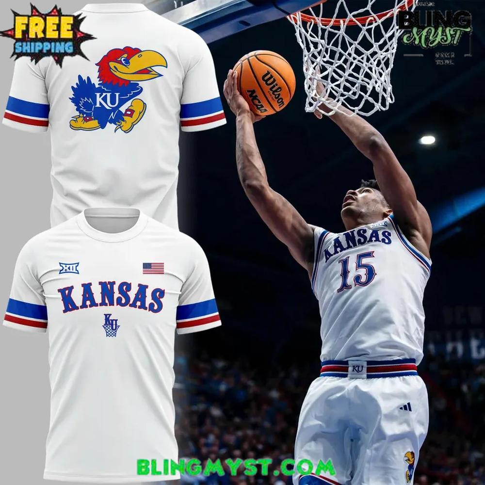 The White Kansas Jayhawks Basketball Throwback 2025 Special T-Shirt brings classic Jayhawks basketball tradition back to life in a clean, wearable essential made for modern fans.