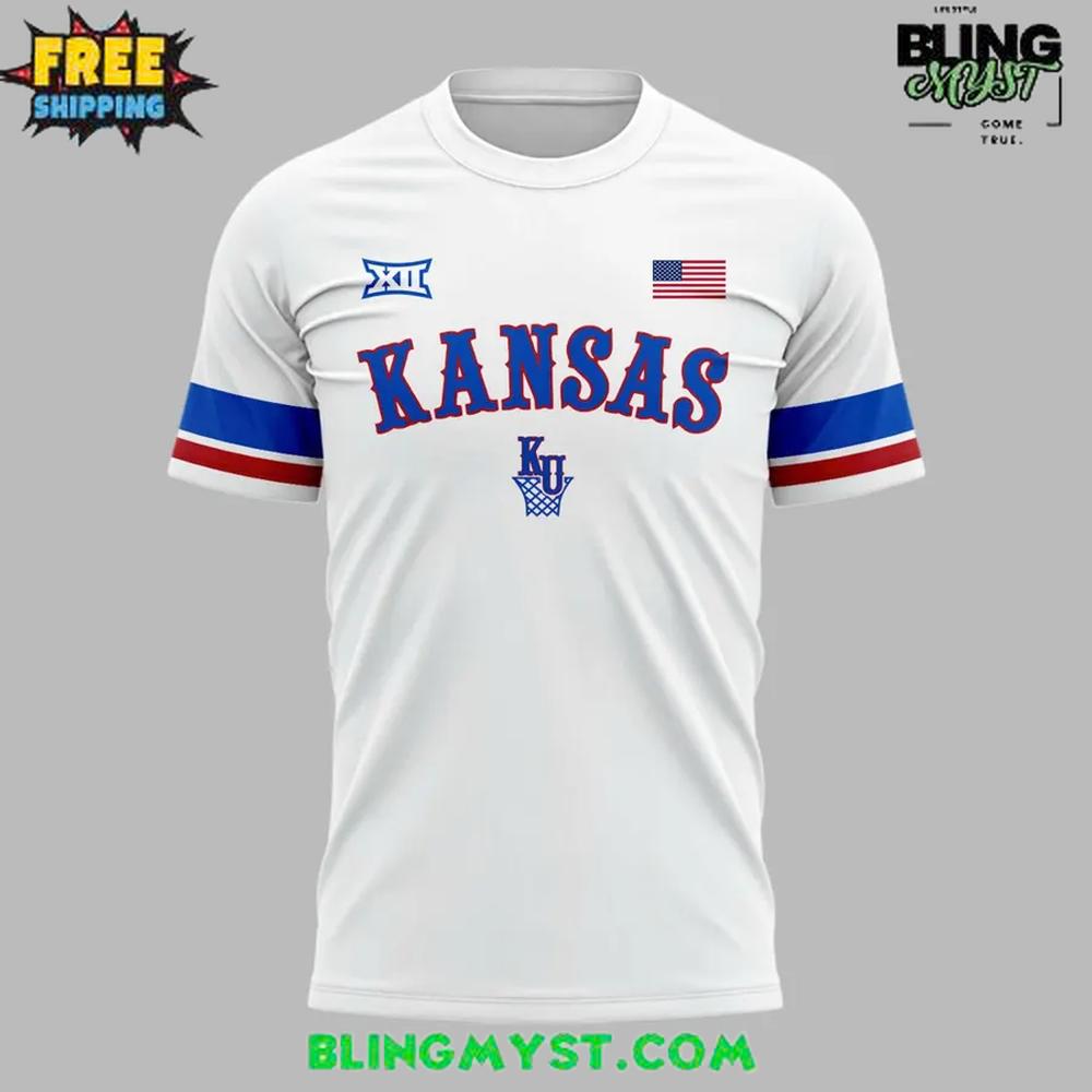 White Kansas Jayhawks Basketball Throwback 2025 Special T-Shirt