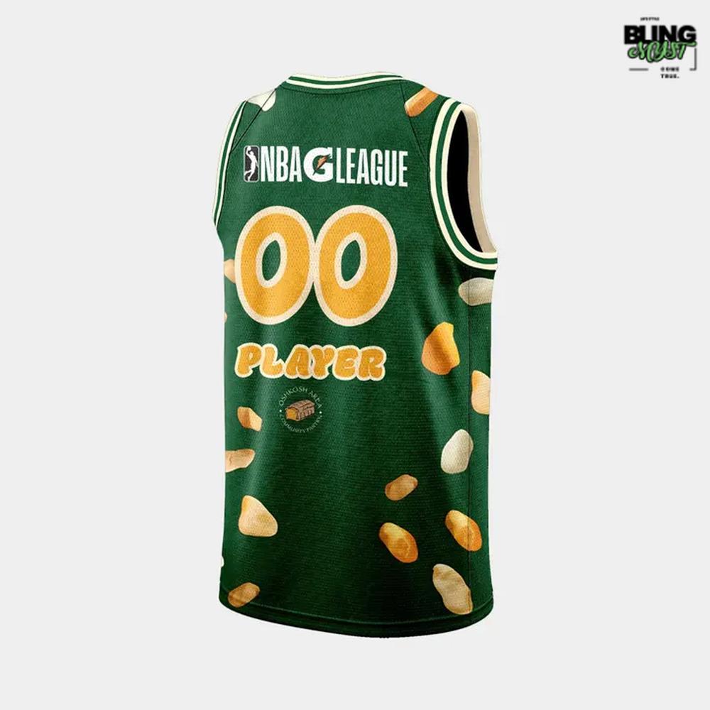 Features a playful, all-over graphic print of golden cheese curds that instantly transforms a standard sports uniform into an unforgettable, novelty statement piece.