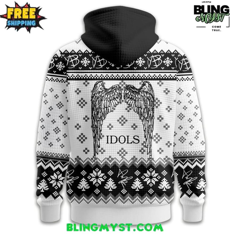 • High-contrast graphics featuring angel wings, symbolic artwork, and “Idols” lettering throughout